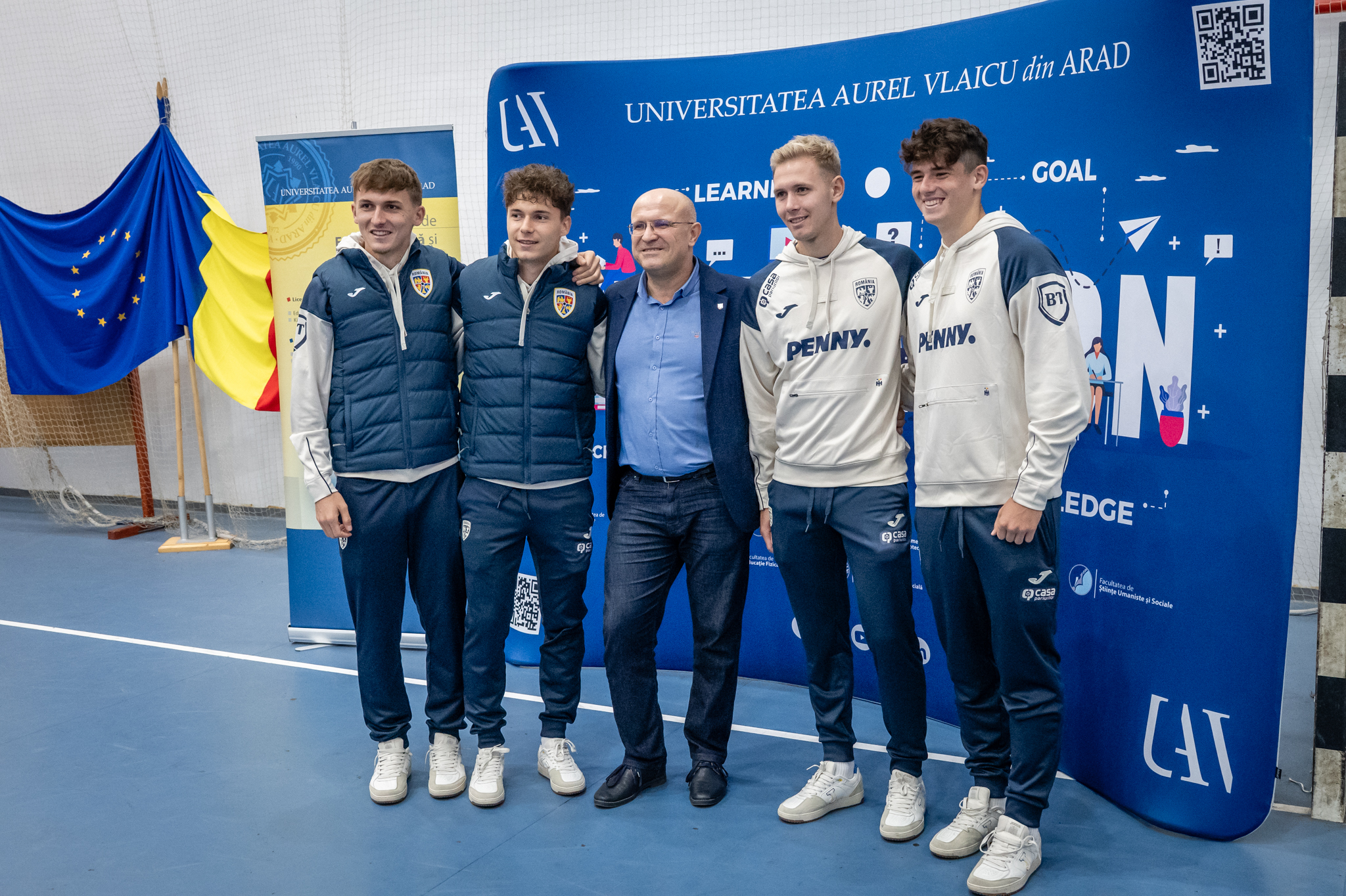 “We were delighted to host the Under-21 team before their game against Serbia. We introduced them to our university, our faculties, and the state-of-the-art facilities of the Faculty of Physical Education and Sports. It’s especially rewarding to see Arad-born players in the squad and to note that one of them, Ioan Vermeșan, is already our student, admitted with a full scholarship as a performance athlete. We offer all professional athletes flexible academic opportunities so they can pursue their studies alongside their competitive careers,” said Assoc. Prof. Dr. Viorel Petru Ardelean, Dean of the Faculty.