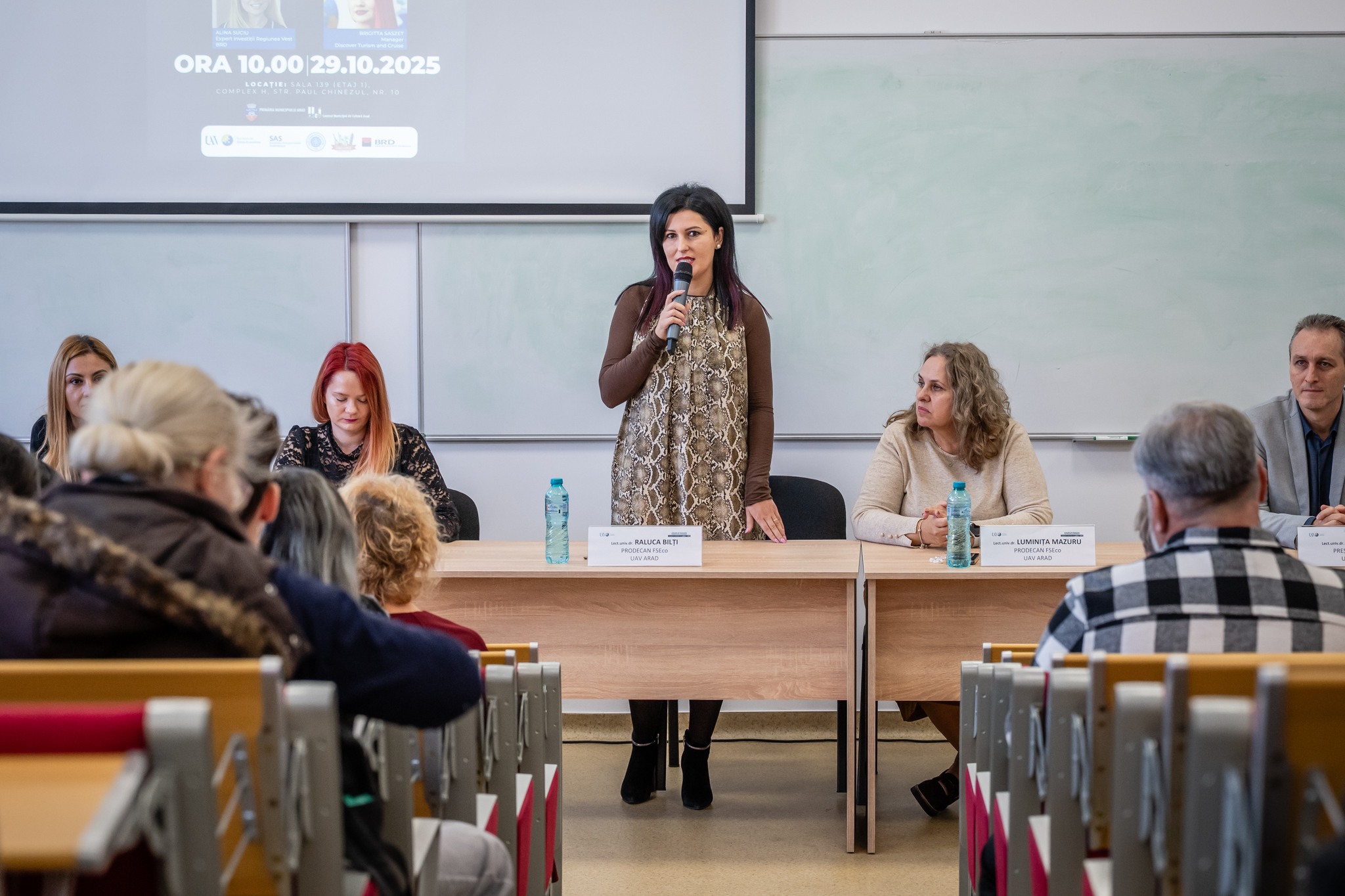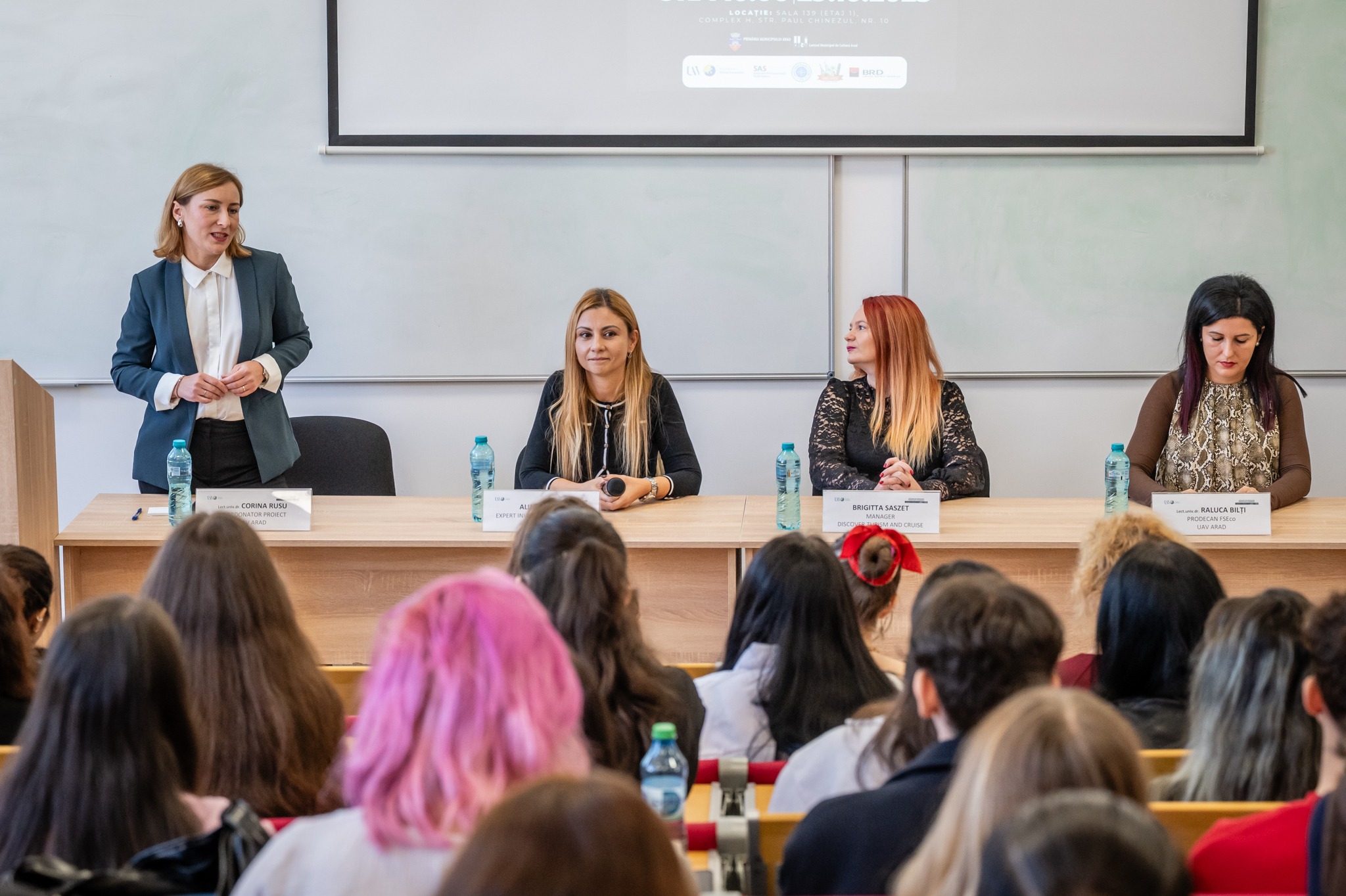 This project was dedicated to developing financial and entrepreneurial skills, carried out in two thematic sections: “The Student Budget Challenge”, focused on efficiently managing personal financial resources, and “The Start-Up Challenge: Survive Your First Year!”, dedicated to entrepreneurial spirit and business strategies. For each of these sections, participants had the opportunity to interact with two distinguished guests who brought practical and inspiring perspectives on the topics addressed. Alina Suciu, Investment Expert for the Western Region at BRD Groupe Société Générale, provided students with practical advice on managing personal budgets and building healthy financial habits. Brigitta Saszet, Manager at Discover Tourism and Cruise, shared her personal entrepreneurial experience and presented the challenges and rewards of the business world.